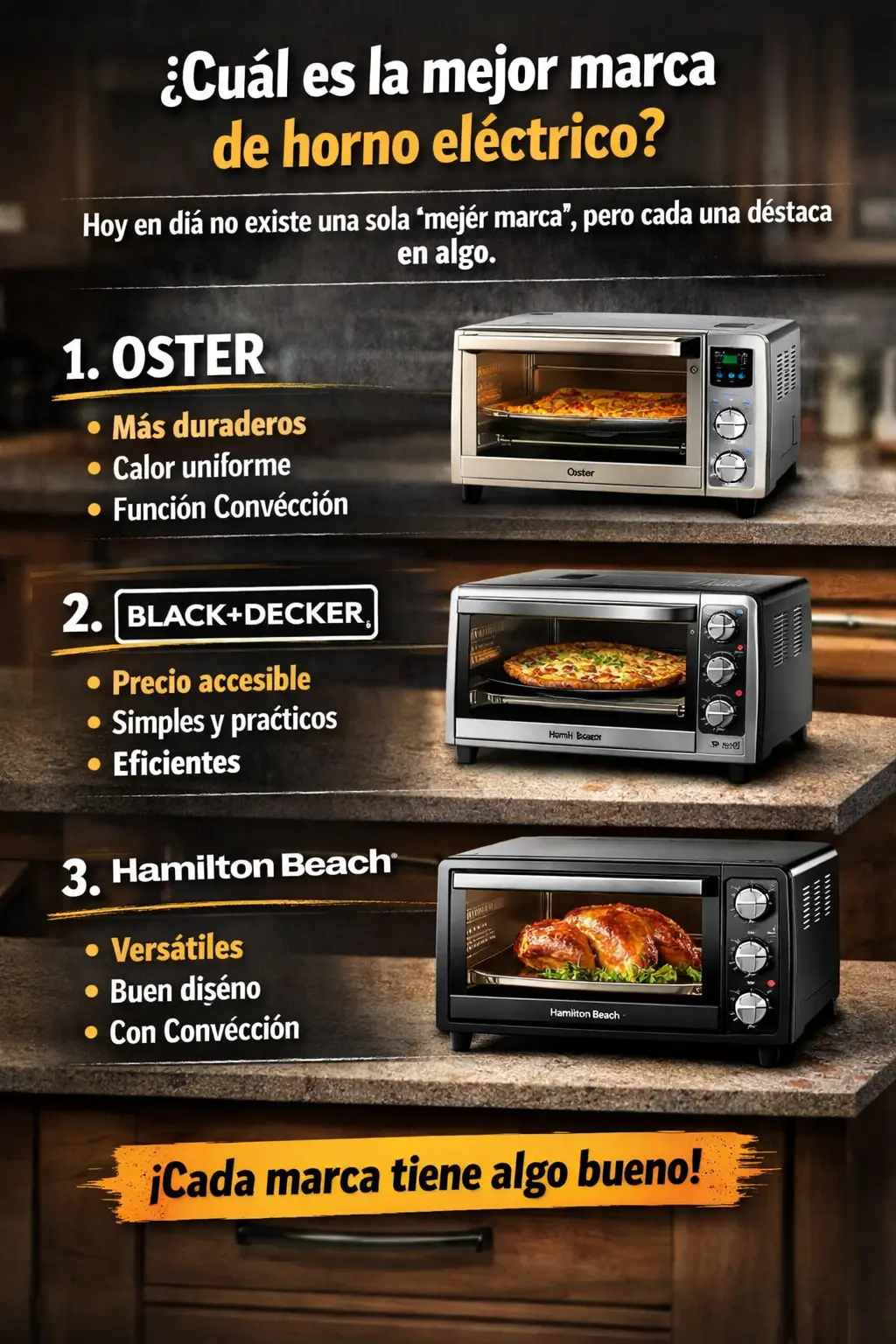 Hoy en día no existe una sola “mejor marca” de horno eléctrico, porque la mayoría cumple bien su función. Lo que sí cambia es en qué destaca cada una (durabilidad, temperatura más pareja, funciones, tamaño, etc.). Por eso, aquí te las contamos por orden, según lo que normalmente busca la mayoría: